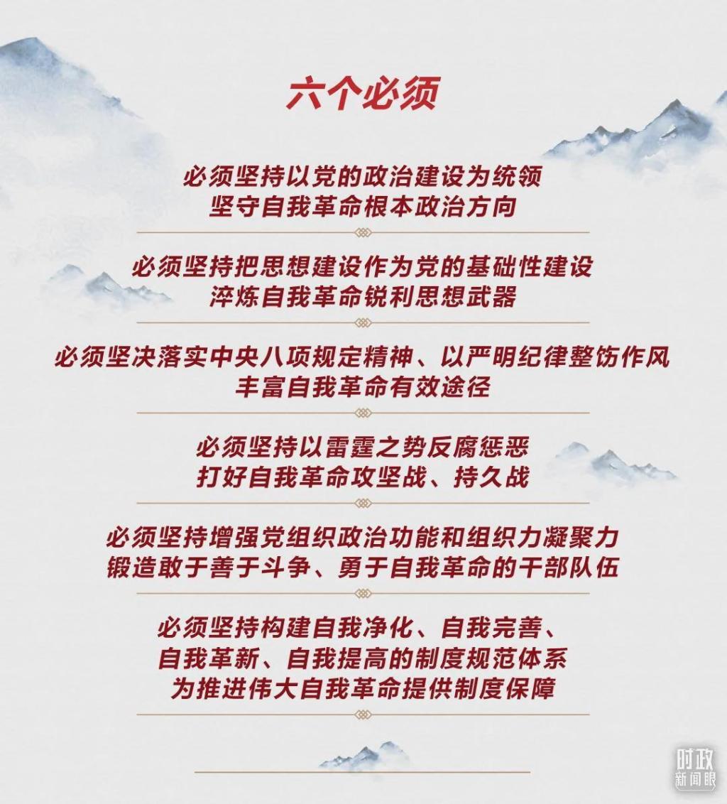 在当天的讲话中,习近平总书记还强调了另两个重点:要巩固拓展党史学习教育成果,更加坚定自觉地牢记初心使命、开创发展新局;要完善权力监督制度和执纪执法体系,使各项监督更加规范、更加有力、更加有效。2021年11月,习近平总书记在党的十九届六中全会上说,我们党之所以伟大,不在于不犯错误,而在于从不讳疾忌医,敢于直面问题,勇于自我革命。充分运用党的百年奋斗历史经验,永葆自我革命精神,坚持严的主基调不动摇,中国共产党一定能带领中国人民在新的赶考之路上考出好成绩。
