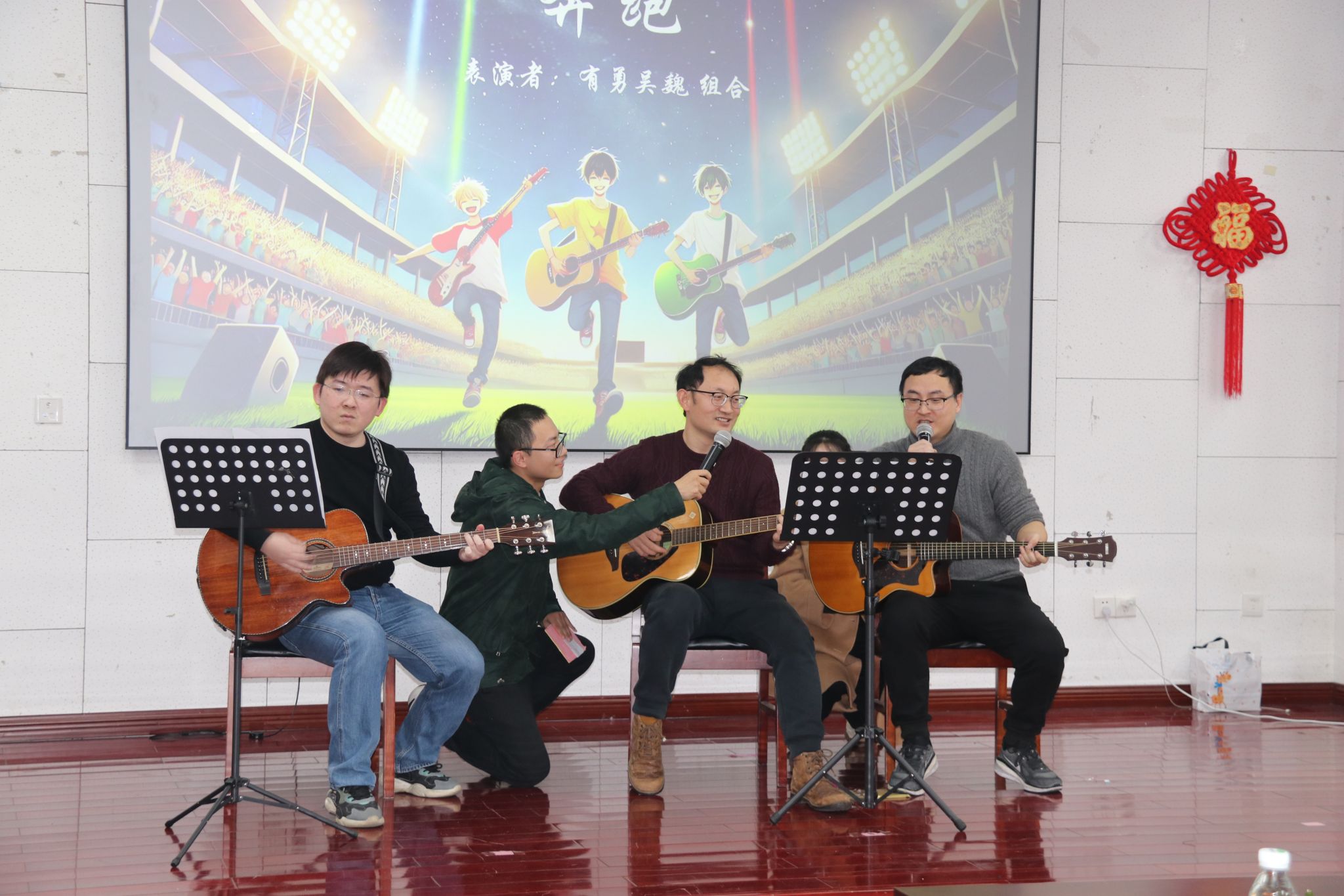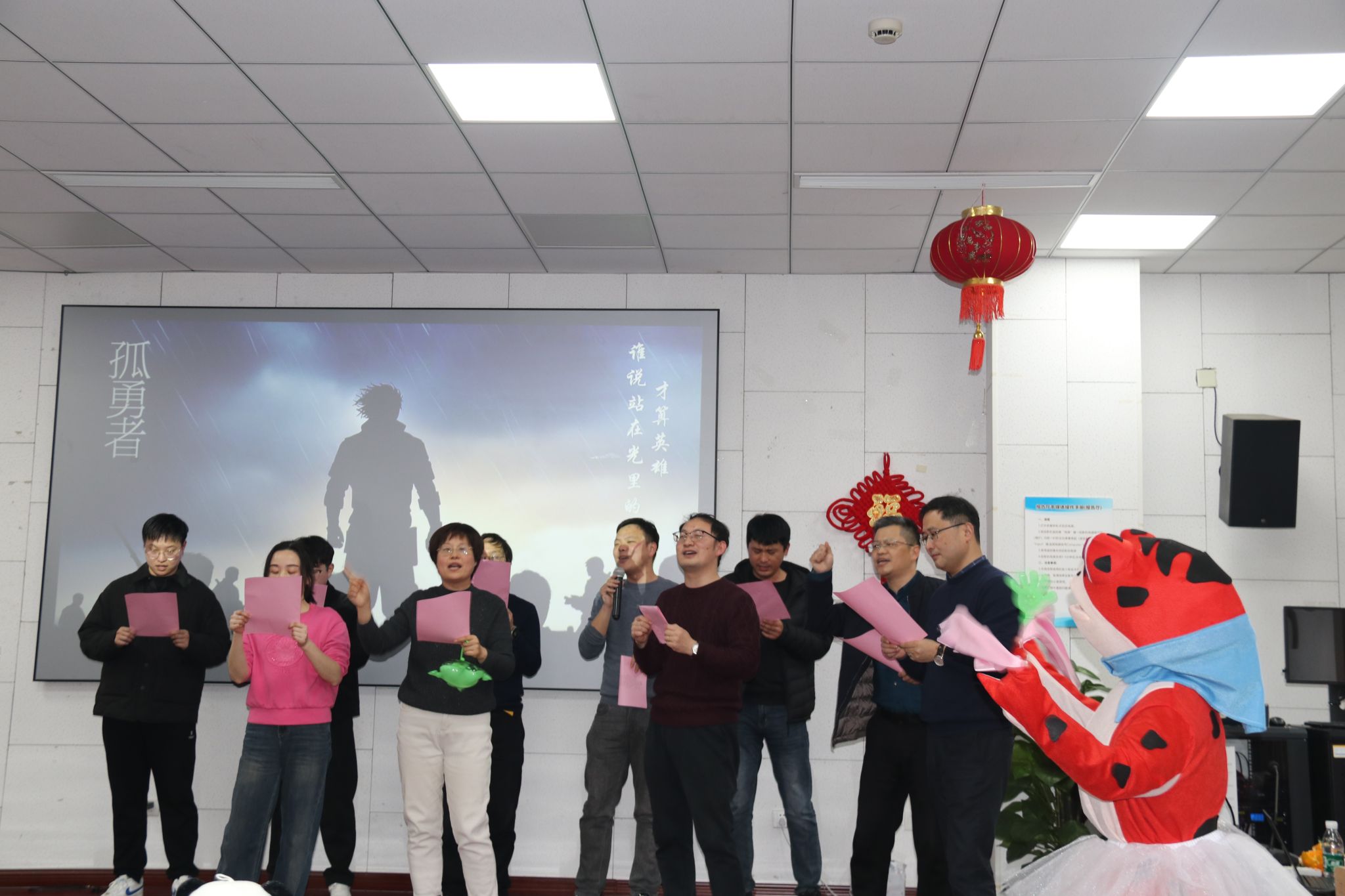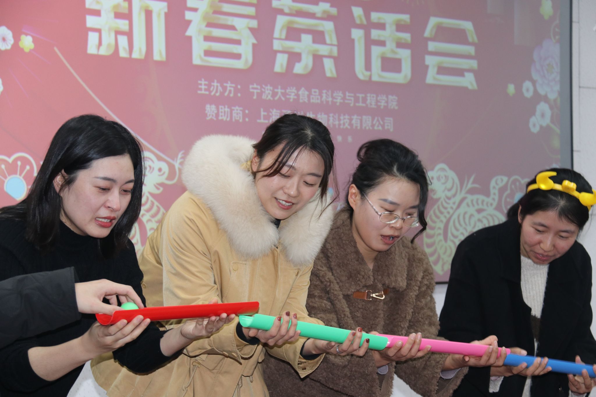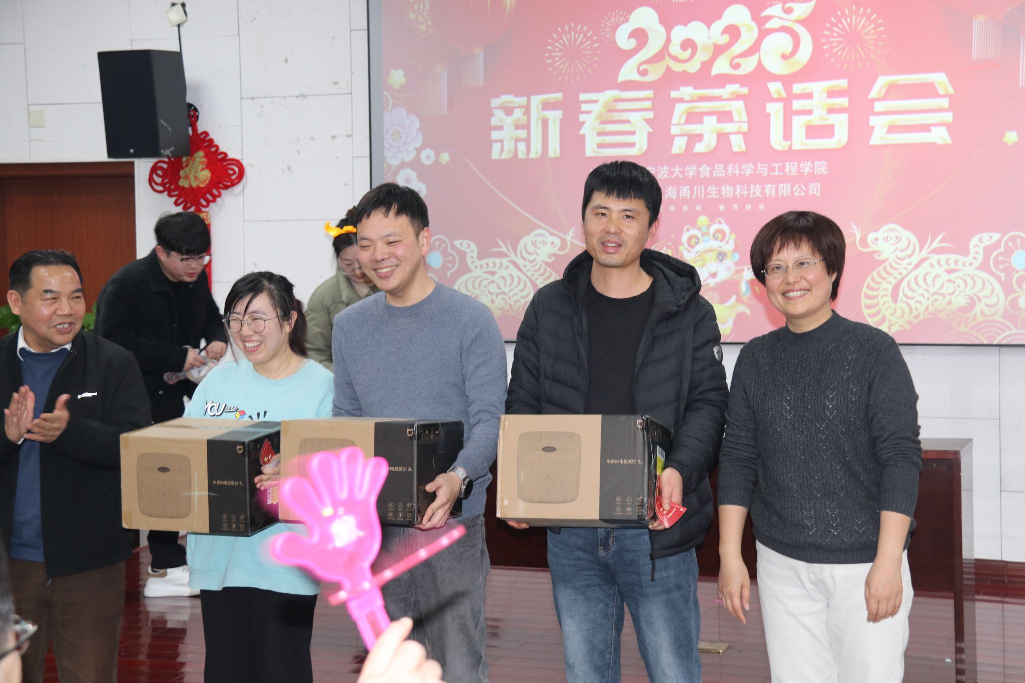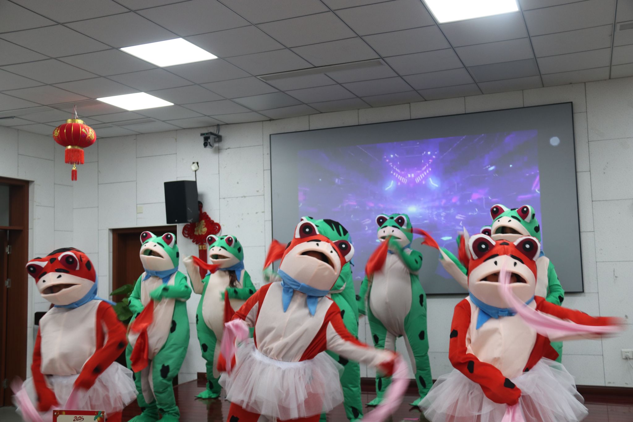 茶话会节目,在舞蹈《新年快乐》中拉开序幕。大家纷纷展示才艺,合唱《有点甜》,吉他弹唱《奔跑》,朗诵《我爱上班》,独唱《忘了你忘了我》,舞蹈《后宫蛙蛙传之鸿眉乱舞》,合唱《孤勇者》,合唱《明天会更好》游戏“套圈”“夹珠子”“传乒乓球”等节目精彩纷呈。期间,还穿插了抽奖等互动环节,分享了象征学院事业蒸蒸日上的蛋糕。现场气氛热烈,掌声、喝彩声此起彼伏。