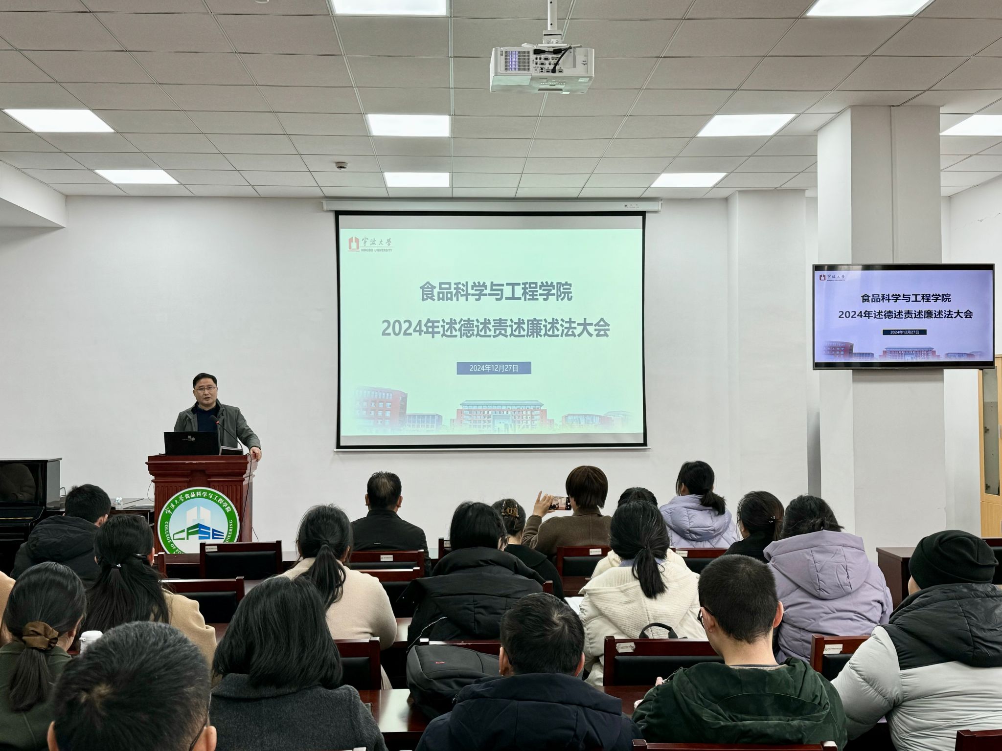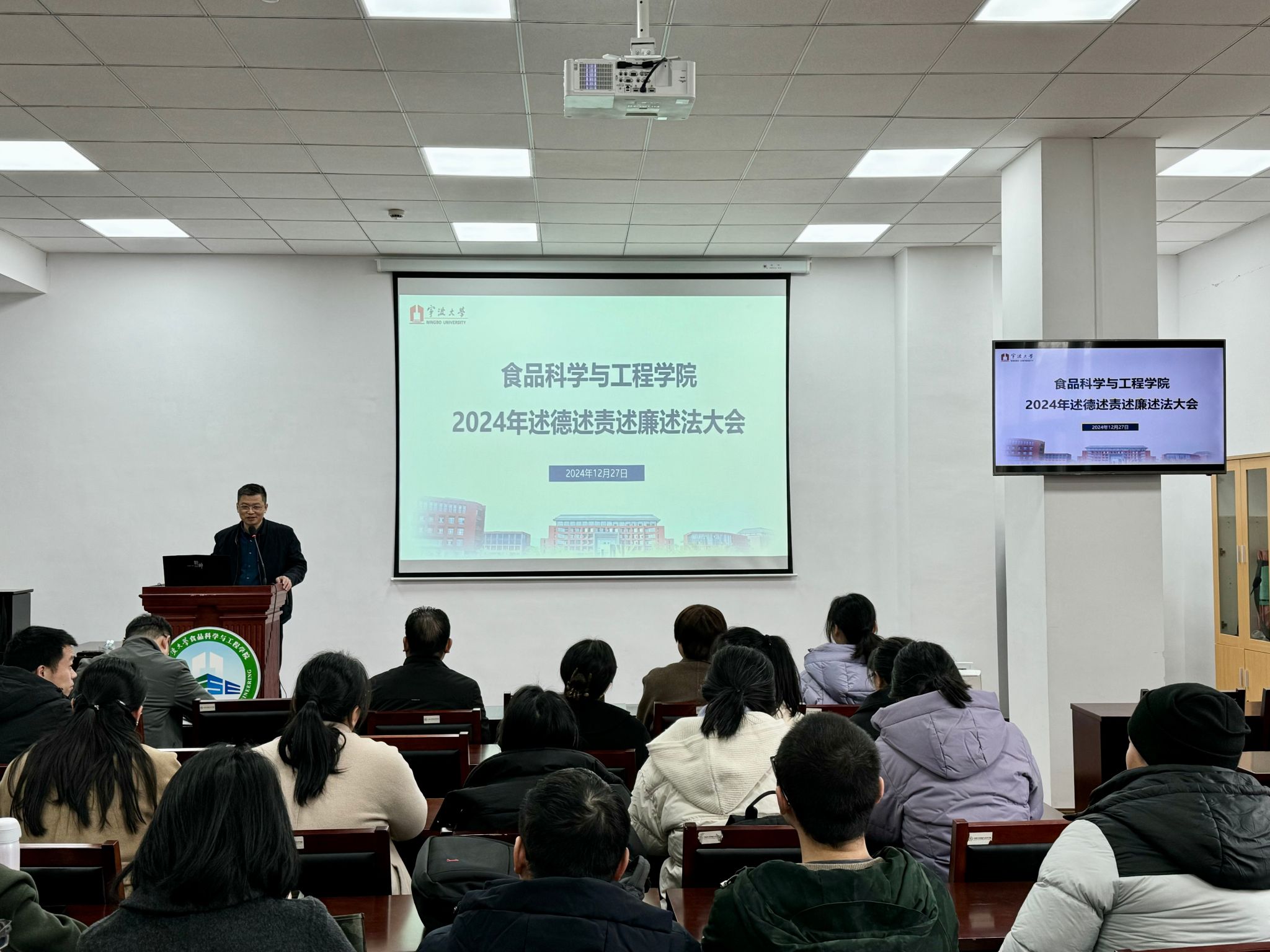 2024年度述德述责述廉述法大会在竺银康楼120会议室召开。会议由院党委书记龚文杰主持,院党政领导班子及全体教职工出席会议。