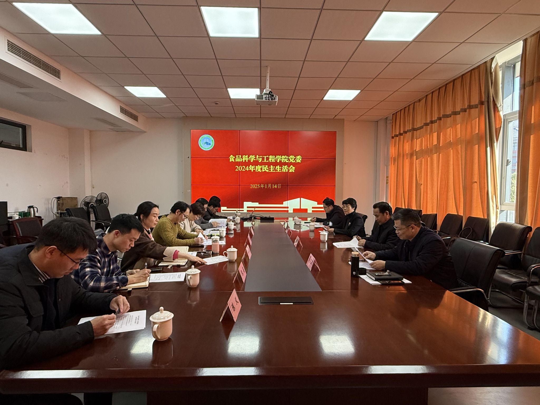 2025年1月14日下午,食品科学与工程学院党委以“深化党纪学习教育、推动改革创新发展”为主题,顺利召开2024年度民主生活会。校级组织员曹虹到会指导。会议由院党委书记龚文杰主持,党委班子成员参加会议,特聘院长潘道东、教师代表黄涛、民主党派代表陈义列席会议。