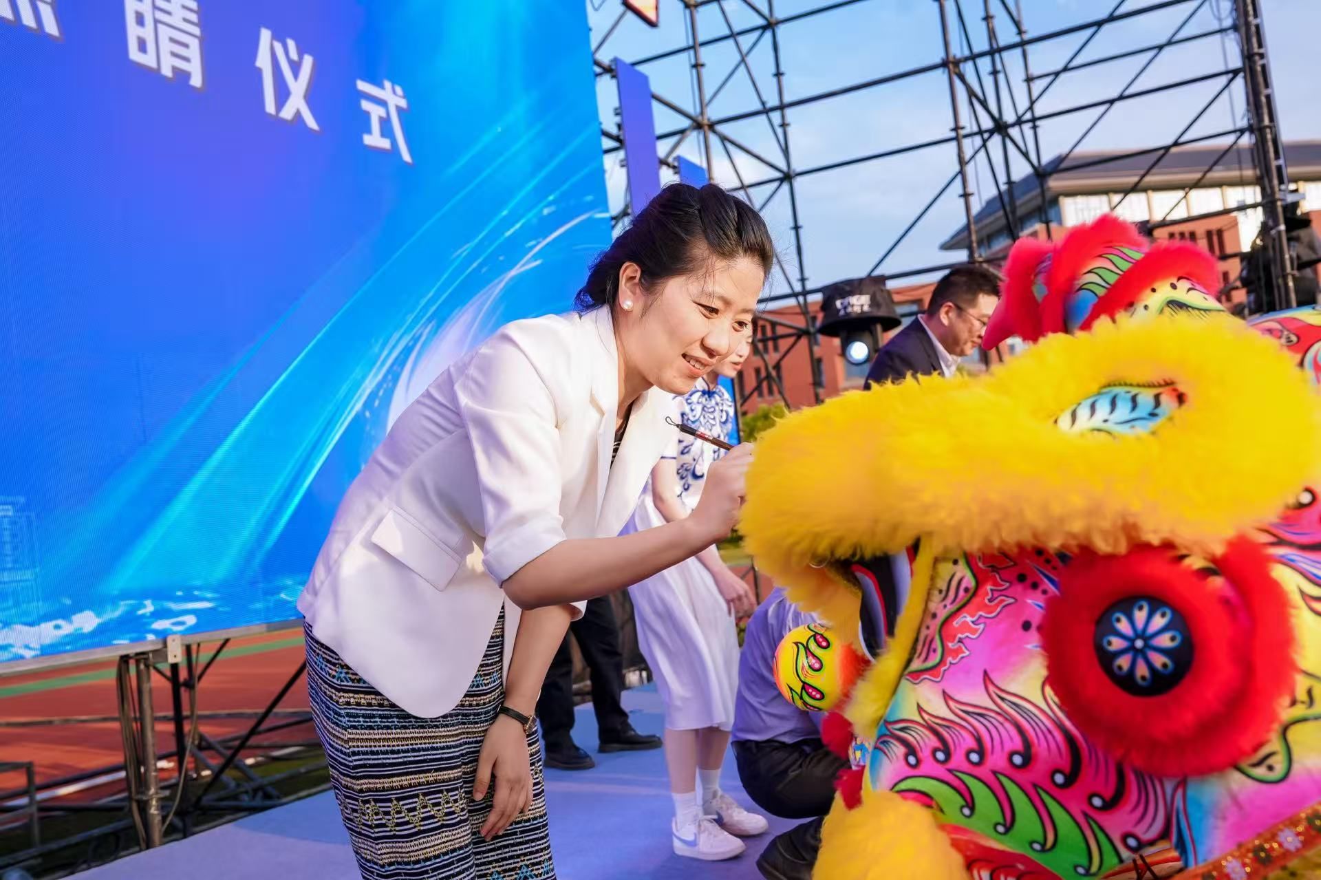 当天,现场还举行了宁波市级非遗梅山舞狮传承人聘任仪式。在醒狮点睛环节,伴随着铿锵锣鼓,四头雄狮腾跃上台,来自北仑区梅山街道、北仑区音乐家协会及无码蜜桃臀