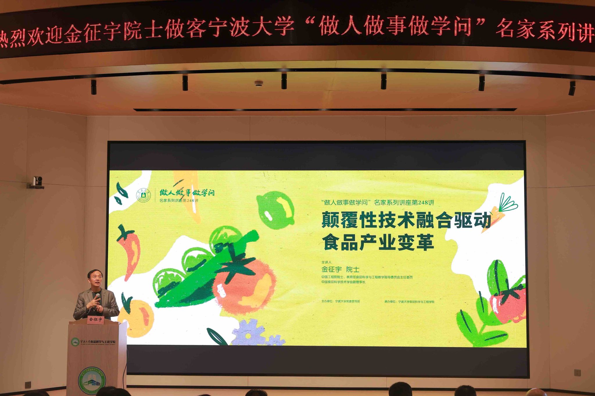 “做人做事做学问”系列讲座。以《颠覆性技术融合驱动食品产业变革》为主题,与宁大师生分享了他的科研经历和感悟。