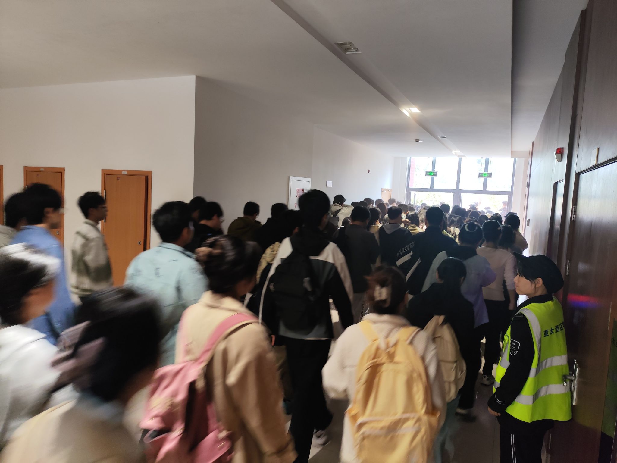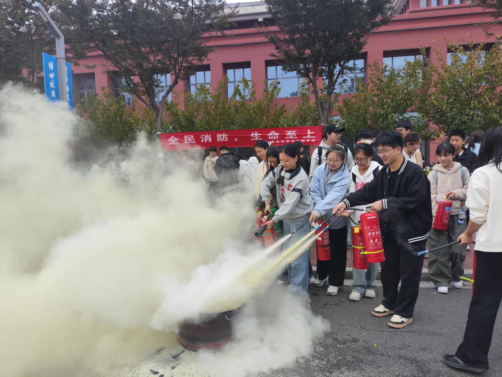 本次演练摒弃“纸上谈兵”,主打“真操实练”。首先是疏散演练,学生先在会堂走廊集中,模拟在紧急情况下快速、有序撤离,撤离到会堂外空旷地带后,清点人数。然后,保卫部陈红军老师详细讲解了各类灭火器和火灾注意事项,并现场示范灭火器和呼吸器的使用方法。为活跃气氛,还进行了消防知识有奖抢答活动。同学们踊跃参与了灭火器使用实操环节,亲手提起灭火器,对准模拟火源,精准扑救,掌握了“提、拔、握、压”的灭火要领。活动现场气氛热烈,秩序井然。