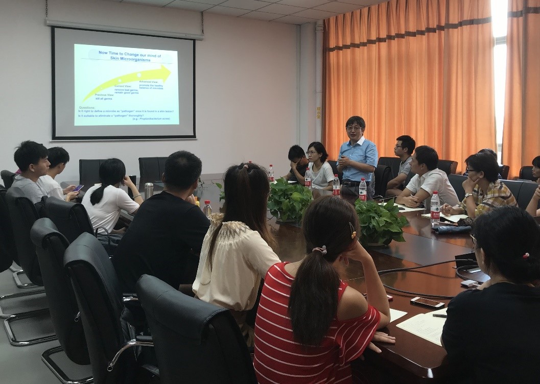 首先,全教授介绍了他在皮肤微生物组研究和汾酒发酵相关微生物组研究的成果,进而引出如何追寻被“遗漏”的微生物这一关键的科学问题。他详细地讲解了5种方法来获得微生物新物种,分别是:通过分离培养,通过富集培养,通过基于元转录组的新方法,通过元基因组/元转录组公共数据库,以及通过高简并引物的两步PCR方法。全教授在报告过程中指出,新的分离培养技术是基于克服传统思维,需要科学研究者们开拓思维,突破固有的观念,不断创新,大胆提出新的观点,例如,传统的微生物分离鉴定过程中,是否存在不足之处?琼脂作为凝固剂是否对某些菌群产生抑制作用?0.22um的滤膜是否能把所有微生物过滤掉?基因组的提取是否未能覆盖样品中所有的DNA?PCR引物是否具有偏向性?测序方法是否遗漏了某些DNA?报告结束后,全教授耐心的回答了与会师生的提问,并就微生物培养技术的突破方面同与会人员进行了热烈的讨论。