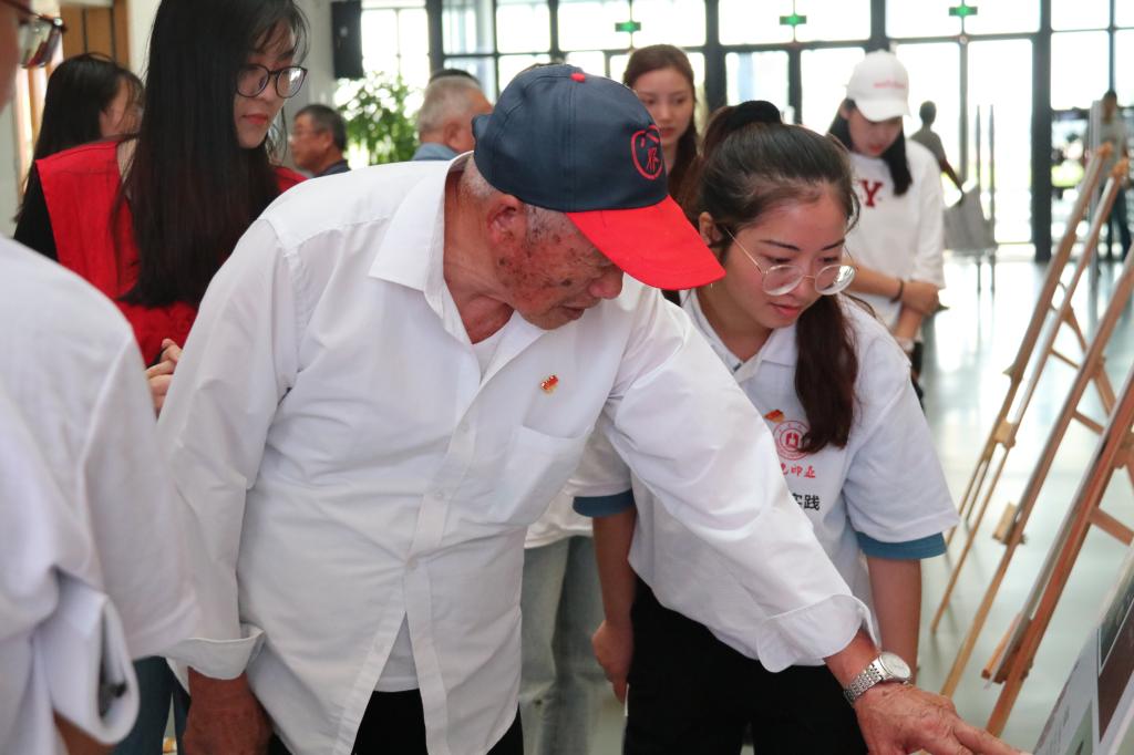 梅山校区行政楼、国际化教育楼、图书馆、食品与药学学院行政楼等地。老人们纷纷感慨祖国繁荣昌盛带来的时代巨变,昔日贫瘠的海岛迎来“双一流”大学的落地生根。老人们还受邀参观了在图书馆举办的以“不忘初心,共画传承与飞跃”为主题的党员社会实践成果照片展,该展充分体现了梅山书记们的“初心与使命”、非遗传人的文化自信与传承、改革创业者的奋斗与开拓、手工匠人的坚守与创新、退伍老兵的刚毅与无畏、退休老党员的奉献与担当等。此外学院还邀请“新中国同龄人”和梅中村村干部等一行人参加主题为“不忘初心,共话历史与展望”的座谈会。与会双方交流了梅山的历史变迁和巨大发展,同时就实践基地合作、资源整合、党建共建展开了详细探讨。