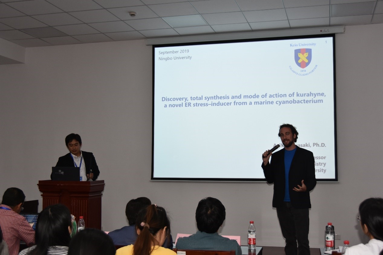 食品与药学学院C.Benjamin Naman副教授主持大会。日本庆应义塾大学的Arihiro Iwasakiz、来自韩国江源大学的Dawoon Jung、约旦大学的Jehad Almaliti等专家学者,给无码蜜桃臀