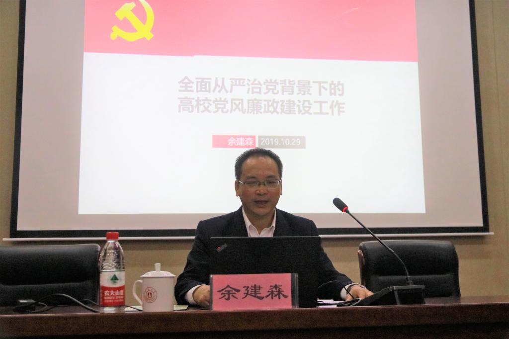 10月29日下午,食药学院党委理论学习中心组集体到梅山校区海运学院泰昌祥报告厅听廉政党课。校纪委书记余建森以《全面从严治党背景下的高校党风廉政建设工作》为题上专题党课。