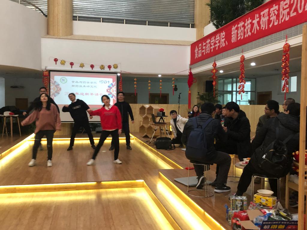 茶话会上,食药学院院长潘道东作迎新致辞,潘道东向在场教职工致以诚挚的问候和良好的祝愿,总结了学院一年来的工作情况,对全体教职工一年来的辛勤付出表示感谢,并就博士点申报、工程教育认证、国际化建设等学院重点工作提出了新要求,希望全体教职工共同努力、着眼当下,为学院快速发展砥砺前行。茶话会在热烈的开场舞中拉开序幕,大家纷纷展示自己的才艺,独唱《野狼disco》、吉他弹唱《心中的红歌》、钢琴独奏《春之练习曲》、小合唱《欧若拉》、游戏《吸管传递》《一心二用》《正话反说》等节目形式纷呈,其中工作组更是“学习强国”挑战答题搬上荧幕,大家纷纷上台抢答,将茶话会的气氛推向了高潮。