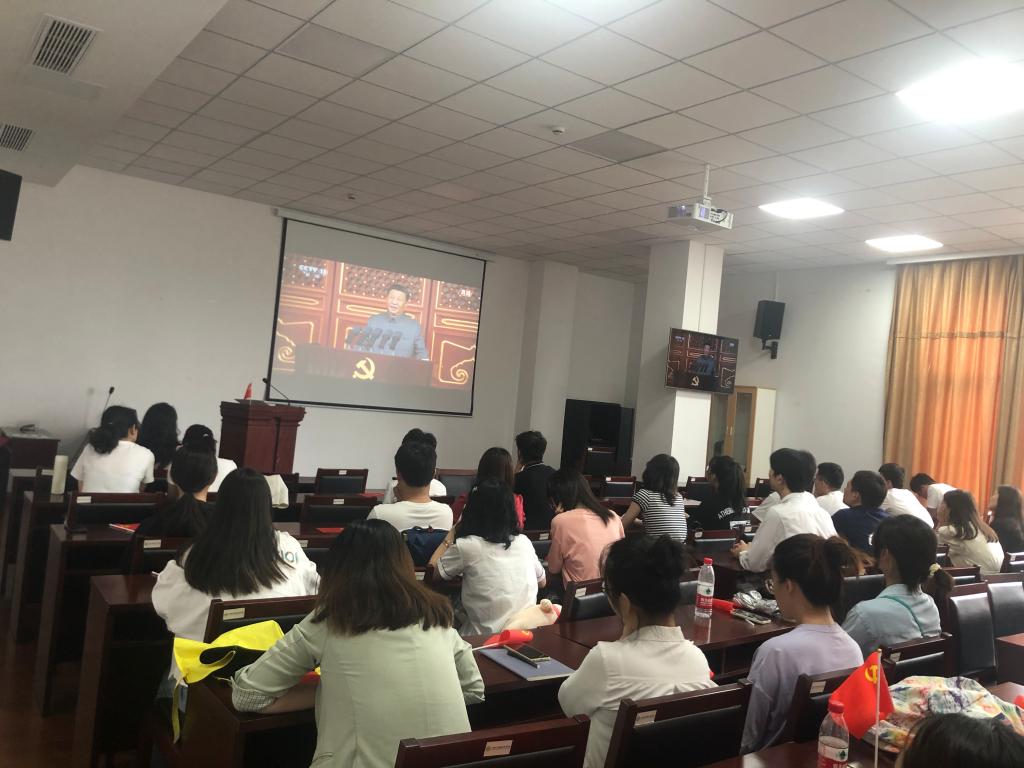 2021年7月1日上午8时,食品与药学学院党委组织师生党员在梅山校庆竺银康楼122会议室集中收看中央庆祝中国共产党成立100周年大会直播。
