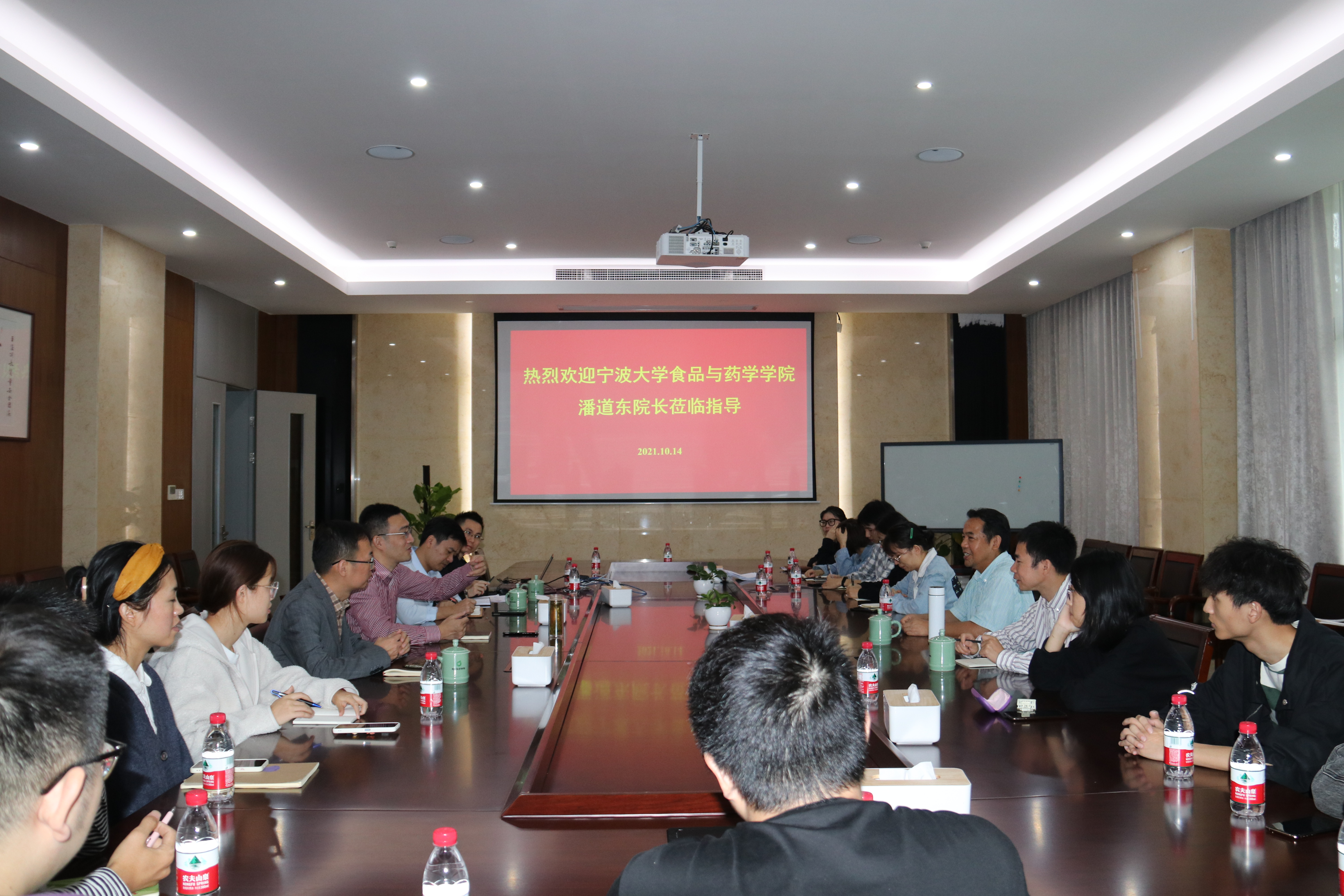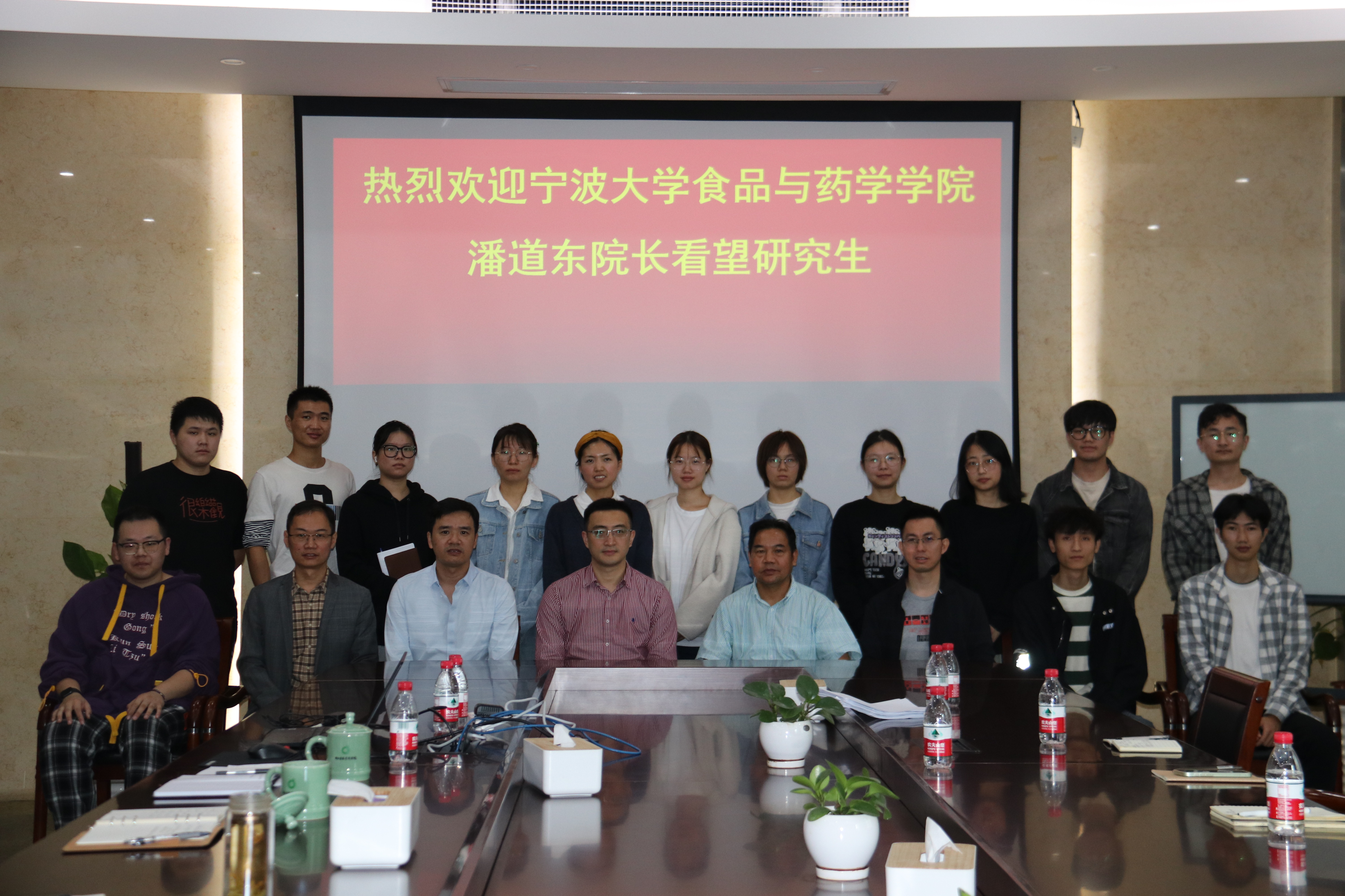 与农科院联合培养学生,并与农科院相关导师代表和学生进行了座谈交流。潘道东详细询问了解同学们学习、科研与生活情况,并就实验室安全、思想动态等开展了教育,鼓励同学们志存高远、脚踏实地,充分利用省农科院优质的科研条件,高质量完成研究生学业。