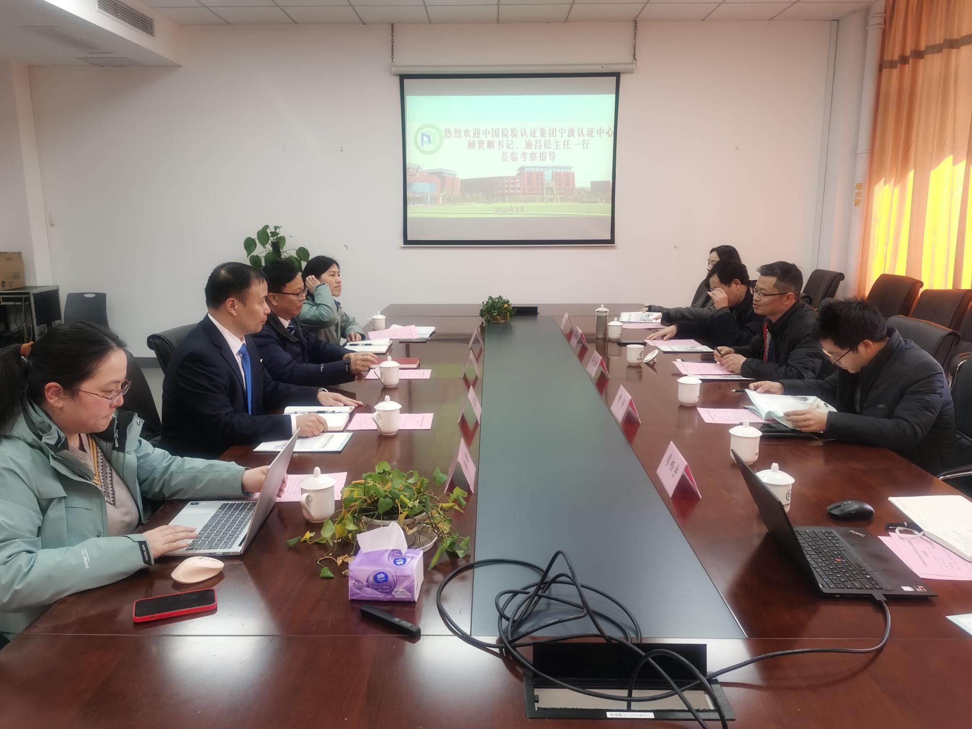 2023年2月28日上午,中国检验认证集团宁波认证中心一行到访食品与药学学院,对学院的发展历程和教学情况进行了深入了解,并就人才培养方案、校企产学研合作和继续教育等问题进行了交流。