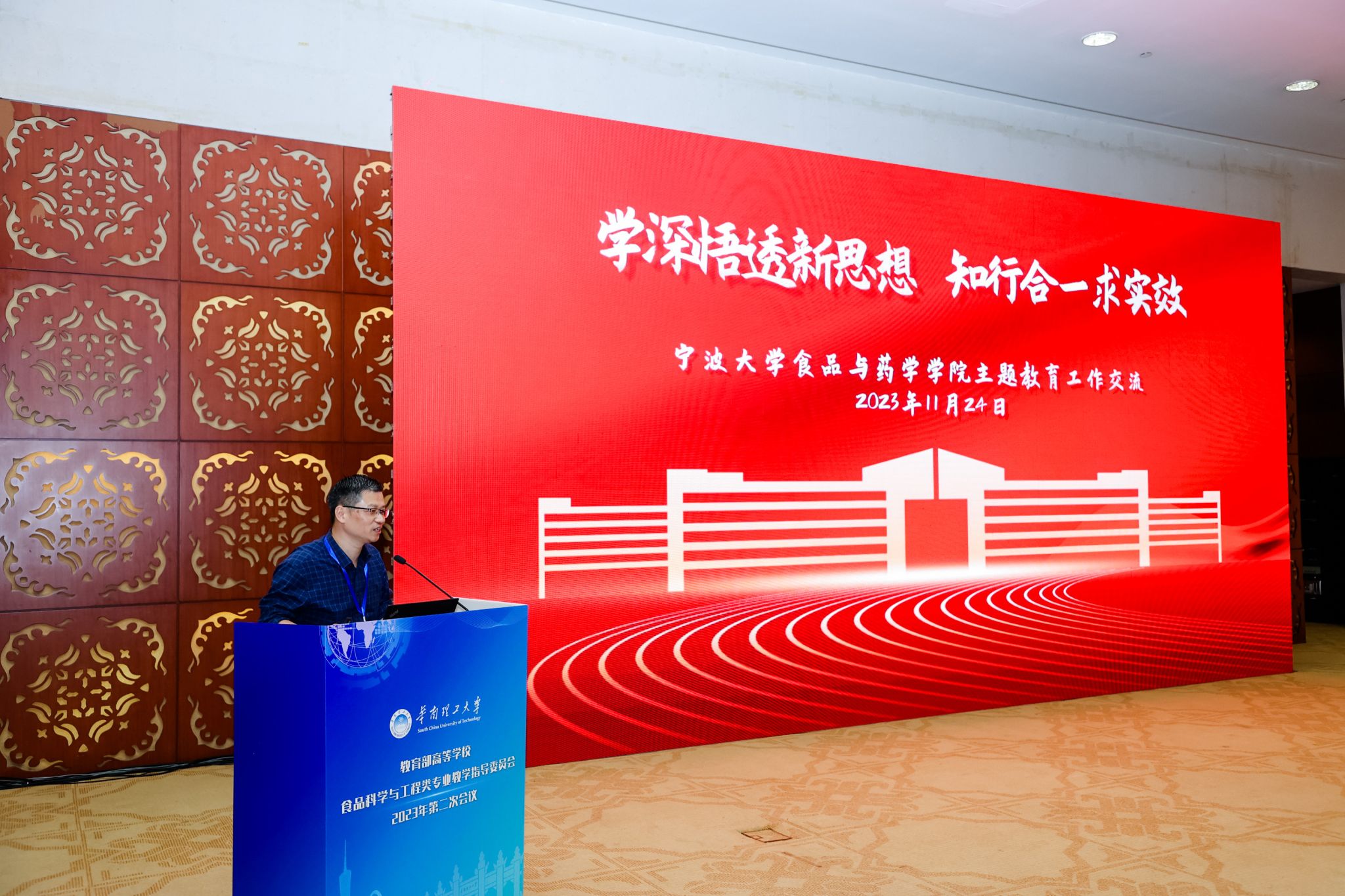 1123日至25日,教育部高等学校食品科学与工程类专业教学指导委员会2023年第二次会议(全国高校食品学科党建联盟第三次年会)在华南理工大学召开。无码蜜桃臀 特聘院长潘道东、执行院长邵兴锋、党委书记龚文杰、副书记谢果凰、副院长吴振、副院长许凤一行6人参加会议,并在年会食品学科党建育人创新论坛上作交流报告。