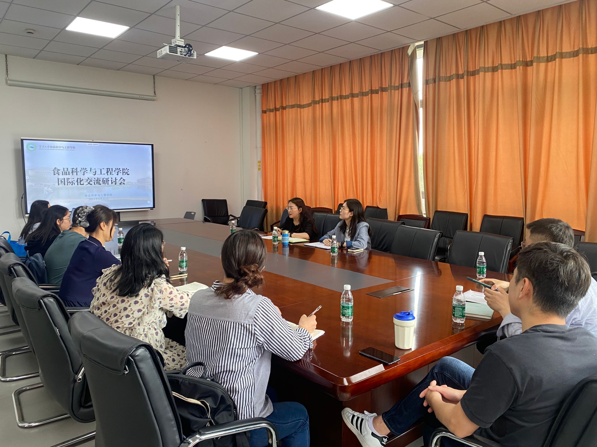 于5月22日下午,召开国际化交流研讨会。学院党委副书记、副院长谢果凰主持会议、8位具有海外背景的教师代表及国际化相关行政人员参加会议。
