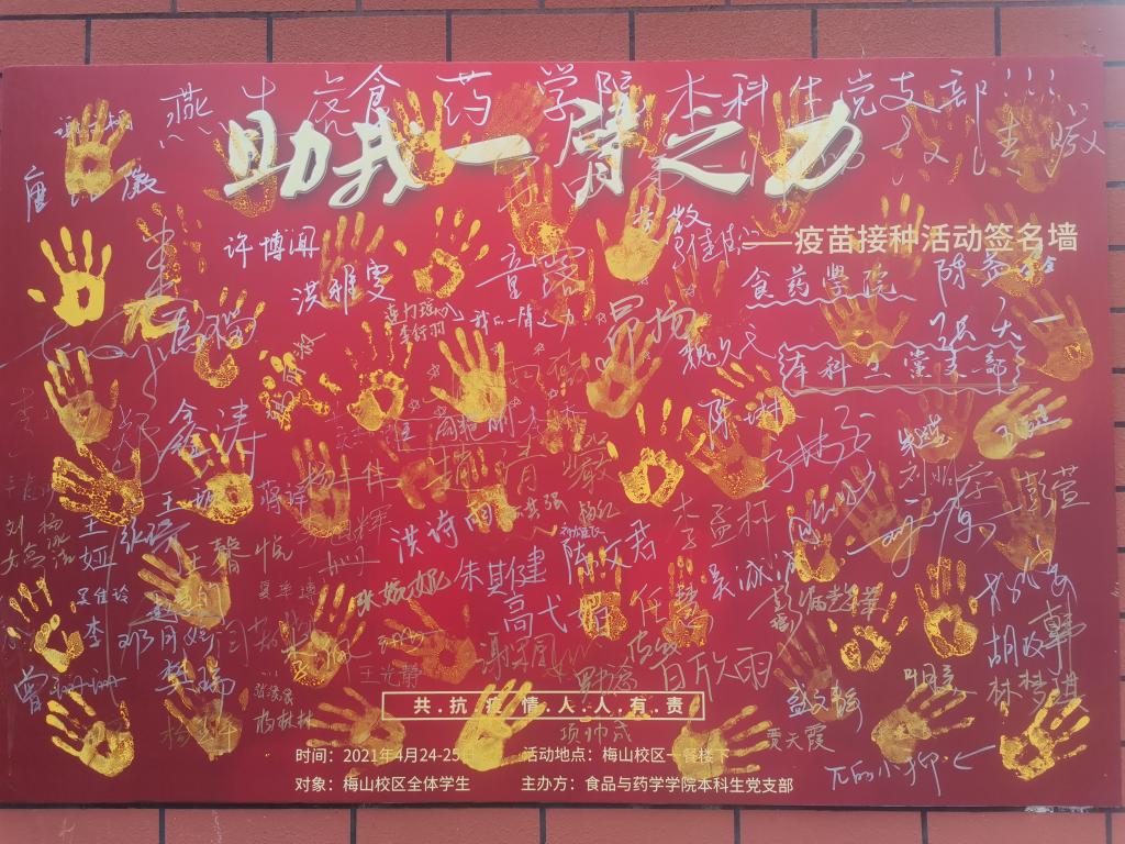 梅山校区举办了“借我一臂之力,共筑防疫心墙”的疫苗接种宣传活动暨防疫主题党日活动。这也是学院“时耀奋进新征程”系列主题党日活动之一。