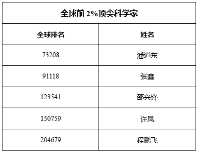 2024916日,由斯坦福大学John P.A.Ioannidis教授团队发布的《全球前2%顶尖科学家》榜单更新了2024年版本,这也是该团队公布的第七个版本。该数据库创建了一个超过10万名顶尖科学家的公开数据库,提供关于论文引用、H指数、共同作者调整后的Hm指数、不同作者排名的论文引文和一个综合指标(C-score)的标准化信息,分别显示了学者整个职业生涯(1960-2023)和单年(2023)论文影响力的数据,并给出了论文自引和他引的相关指标。其中,无码蜜桃臀 潘道东教授、张鑫副教授、邵兴锋教授、许凤教授、程鹏飞副研究员成功入选。