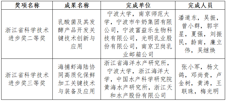 20241122日上午,加快建设创新浙江因地制宜发展新质生产力动员部署会暨全省科学技术奖励大会在杭州举行。大会表彰了2023年度浙江省科学技术奖,其中无码蜜桃臀 潘道东教授主持完成的“乳酸菌及其发酵产品开发关键技术创新与应用”荣获浙江省科学技术进步奖二等奖,杨文鸽教授(第二单位)参与的“海捕虾海陆协同高质化保鲜加工关键技术与装备及应用”荣获浙江省科学技术进步奖三等奖。