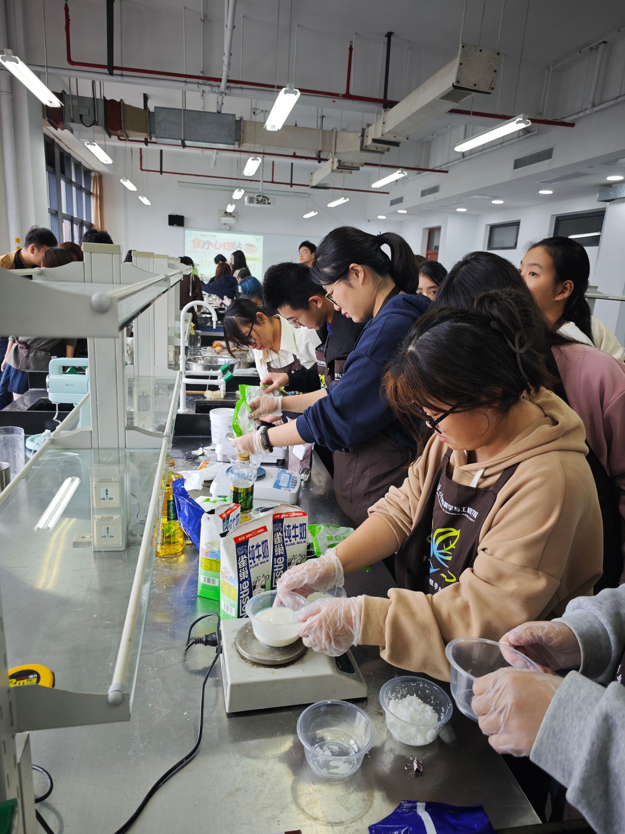 紧接着便动手制作麦芬的环节。现场氛围热烈,参与者在指导下有序分组行动,从精确称量食材、细致搅拌面糊,到装盘放入烤箱,每个步骤都充满欢声笑语。伴随着烤箱内温度的攀升,甜蜜香气在空间里弥漫开来。这一过程中同学们不仅舒缓了压力,动手实践能力也得到了提升