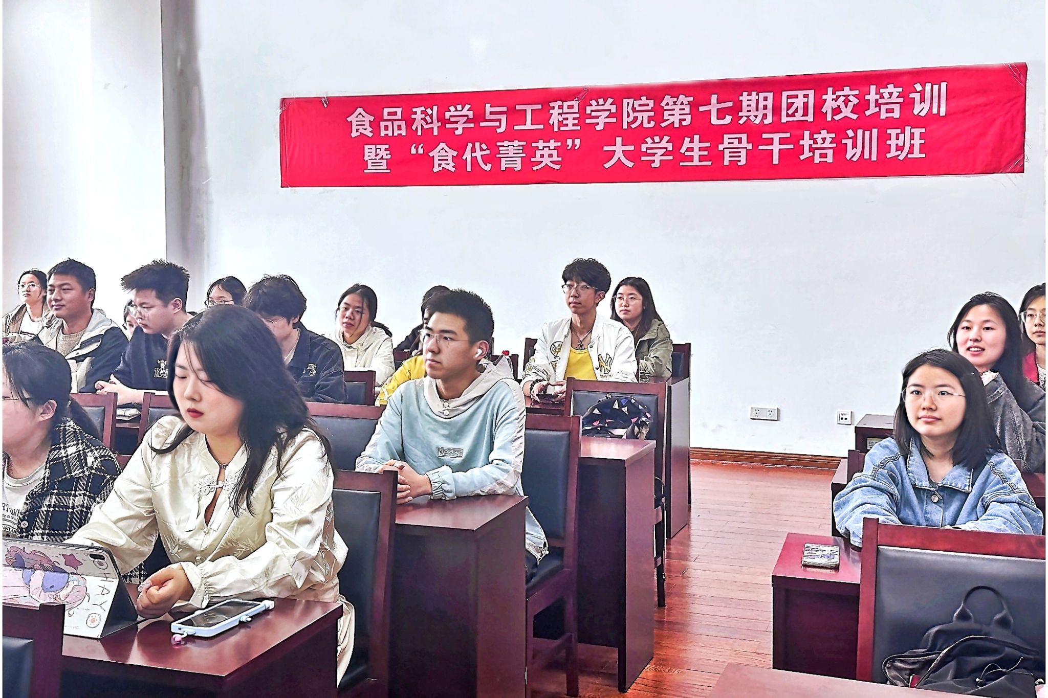 在竺银康楼120会议室举行第七期团校暨“食代菁英”大学生骨干培训班开班仪式。学院学生工作负责人、团委书记、全体团学社干部和新发展团员参加。