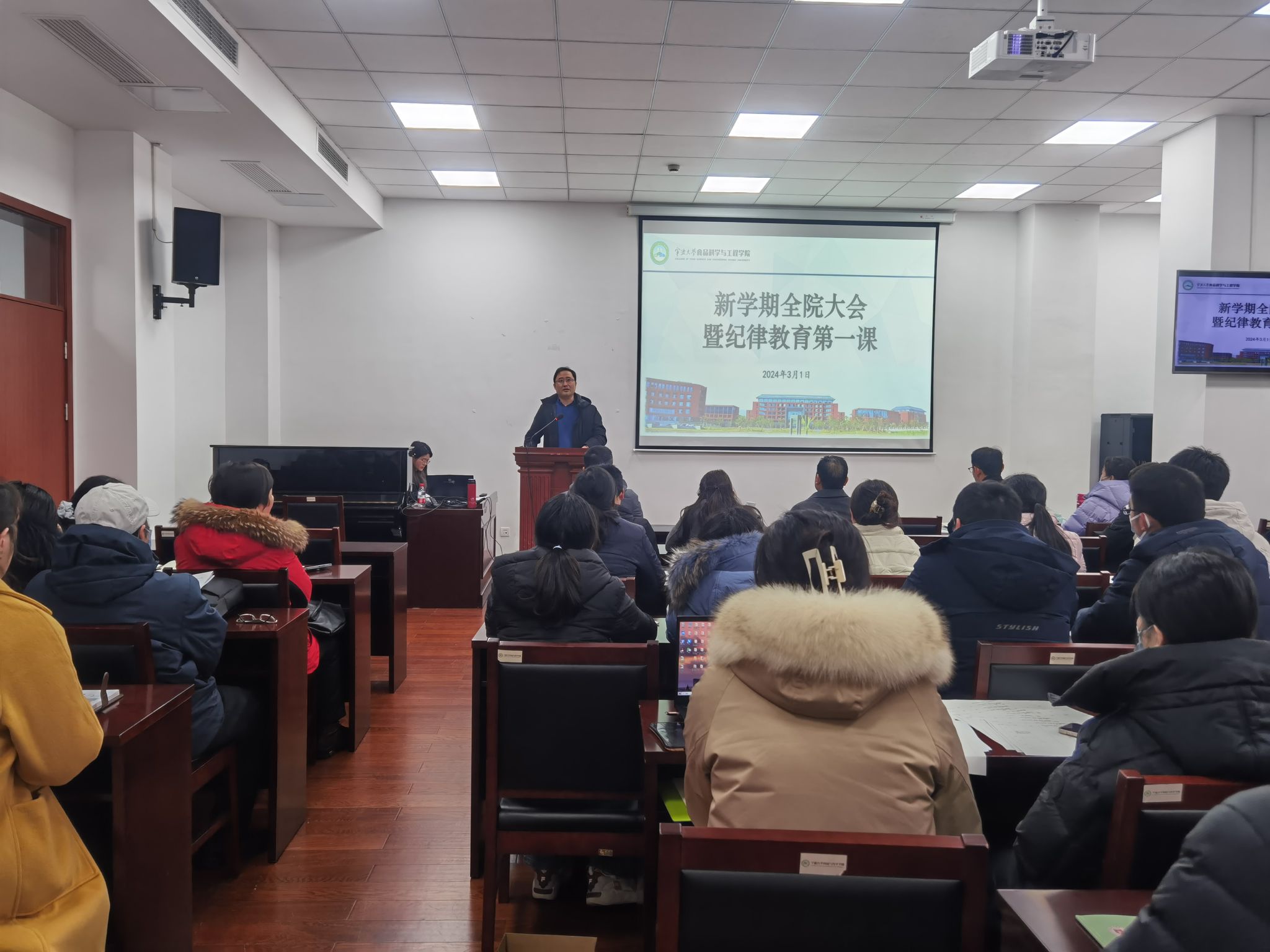 会议强调,2024年是学院调整更名后的事业起始之年,是落实“十四五”发展规划、第八轮聘期任务的关键一年,全体教职员工要积极响应学校党委“坚定信心、固本强基、实干奋进”的号召,以时不我待的紧迫感与只争朝夕的使命感投入到新一年工作中,展现新作为,实现新突破,助推学校高质量发展,以优异成绩迎接新中国成立75周年。