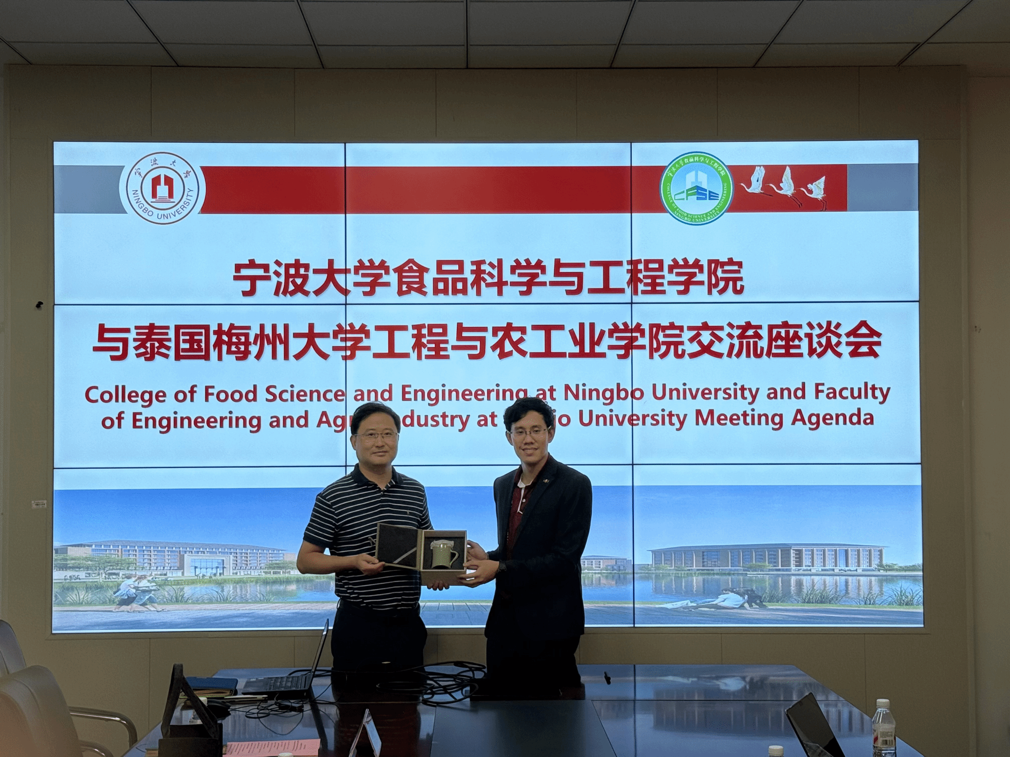 座谈会后,双方互赠具有文化特色的纪念品。此次交流不仅搭建了中泰高校学术合作的桥梁,更为两校在食品科学与工程领域的资源共享、优势互补开辟了新路径。