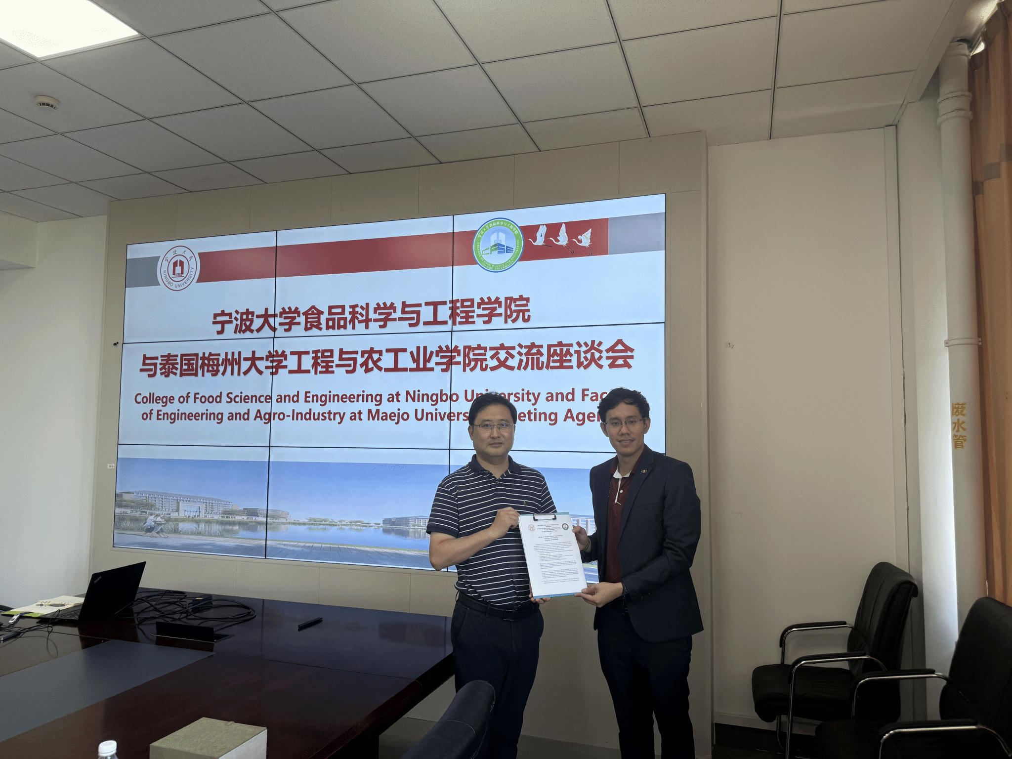 与泰国梅州大学工程与农业产业学院现场签订《合作备忘录》,明确将以师生互访为起点,逐步拓展联合培养、学术研讨等多形式合作。