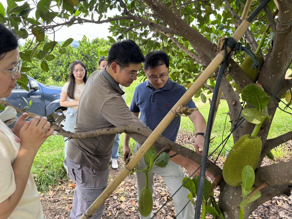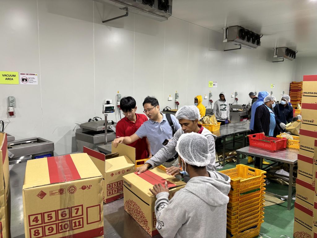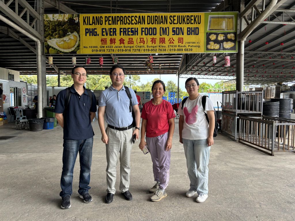 11月17日,UPM农学院园艺系的Phebi Ding(陈菲比)教授会见了代表团一行。Ding教授就马来西亚、泰国等东南亚国家榴莲、菠萝蜜等水果的采收、贮运和出口等情况进行了详细介绍,双方就如何合作研究东南亚特色水果贮运出口等问题进行了详细的探讨,并参观了实验室。11月18-19日,在陈菲比教授的带领和联系下,代表团一行参观马六甲市林国华果园,深入了解菠萝蜜种植和出口情况;赴彭亨州劳勿县恒鲜食品(马)有限公司考察猫山王榴莲种植、采收、收购分级分选、果泥超高压杀菌加工、整果冷冻出口等情况。