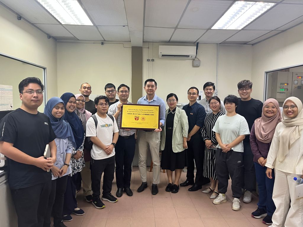 11月16日,代表团在UPM食品科学与技术学院考察交流。院长Anis Shobirin Meor Hussin教授、马来西亚科学院院士Chin Ping Tan(陈振滨)教授和多位教师代表会见了代表团一行。双方就各自所在学院基本情况、合作研究和师生互访等进行了深入交流研讨,并举行了联合实验室在马方的揭牌仪式。