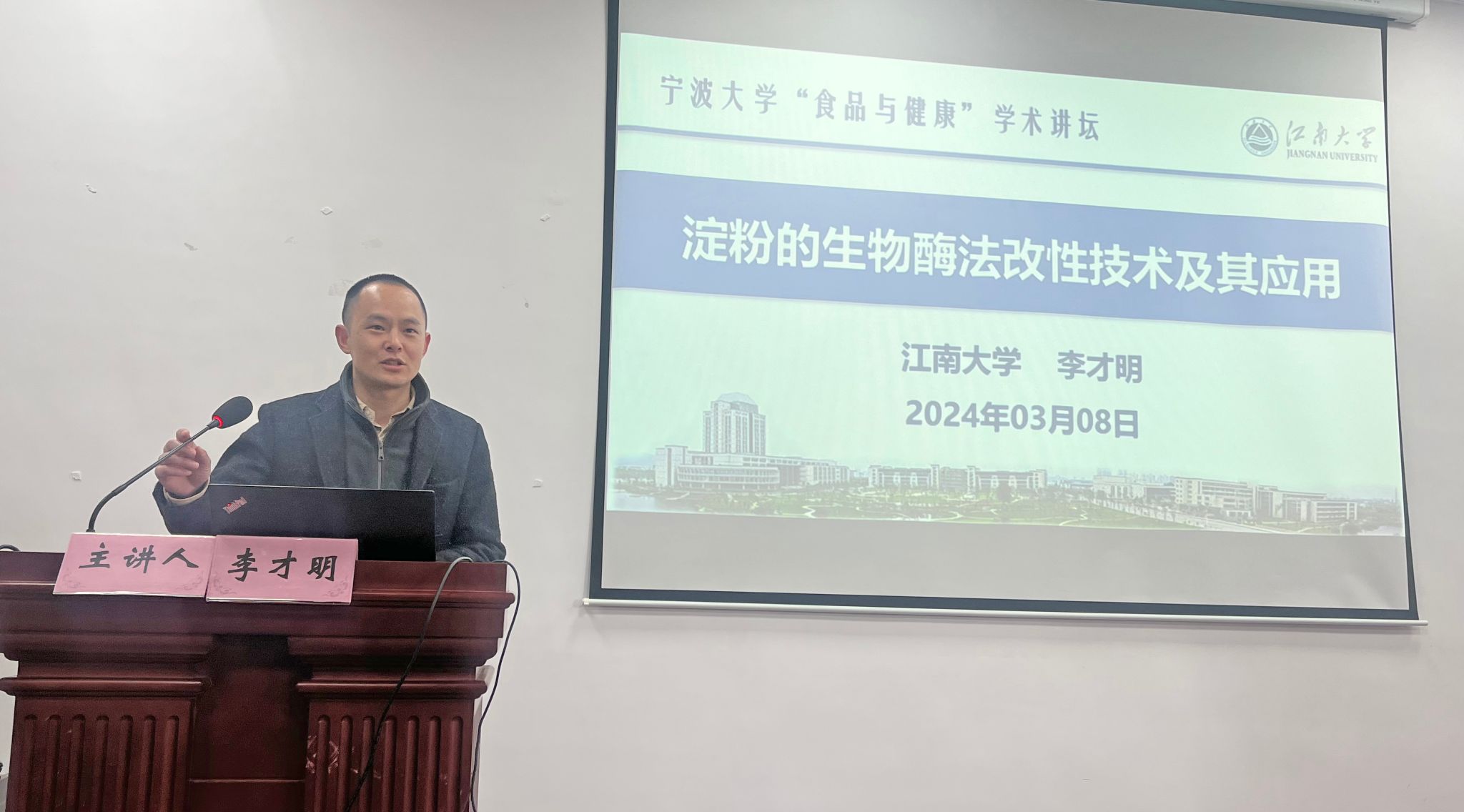梅山校区竺银康楼120室做了《淀粉的生物酶法改性技术及其应用》的学术报告。学院执行院长邵兴锋教授、学术副院长许凤教授、学院教师和研究生90余人参加了此次会议。