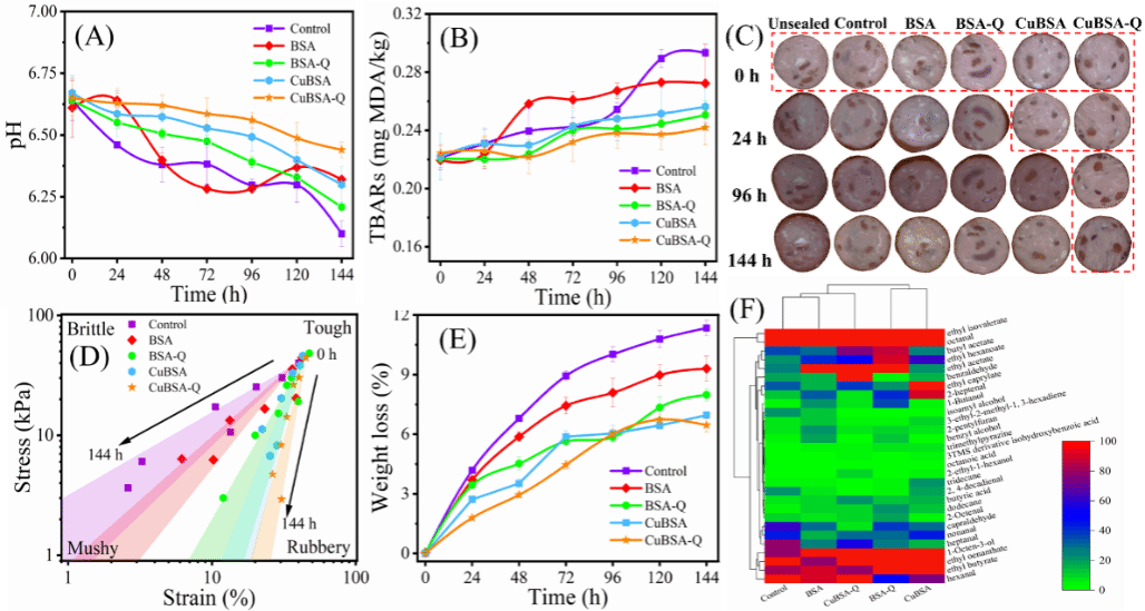 本研究首次将金属离子整合与植物多酚界面络合技术结合,为传统保鲜膜的结构劣化、功效消减快等问题提供解决思路,及肉制品的绿色保鲜技术发展提供理论支撑与产业应用范式。