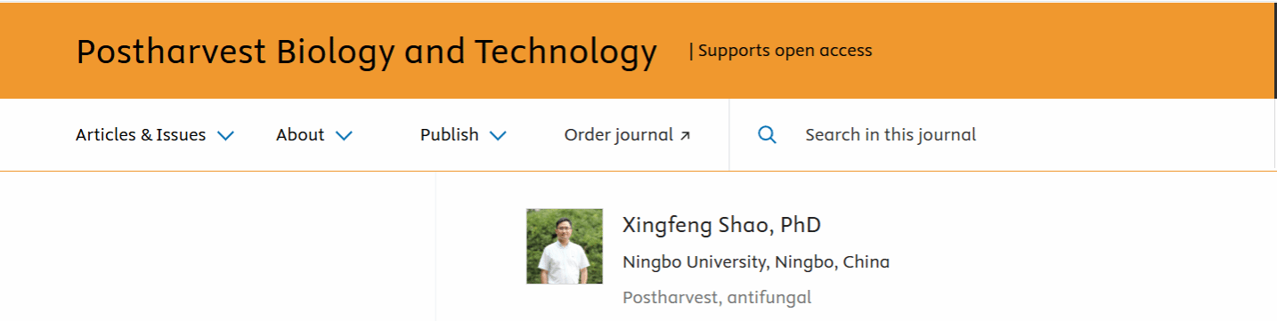 邵兴锋教授受邀担任国际权威期刊《Postharvest Biology and Technology》副主编