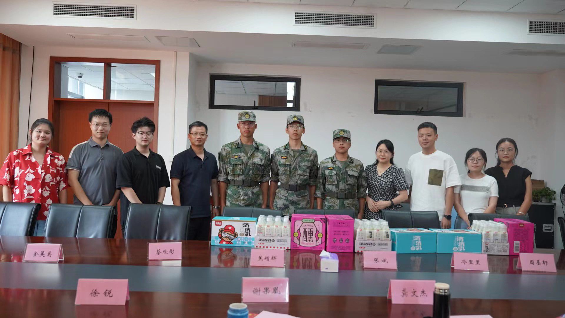 学院领导与军训教官、参训新生代表深入交流,耐心倾听学生诉求,了解参训学生训练、生活适应情况,对同学们奋发向上、努力拼搏的精神状态给予充分肯定,鼓励同学们继续发扬不怕苦、不怕累的精神,以更饱满的热情和更顽强的斗志投入到军事训练中,圆满完成各项军训任务。领导们还逐一听取了各承训教官的军训情况汇报,对教官的辛勤付出表示衷心感谢,并为他们送上了解暑饮品。