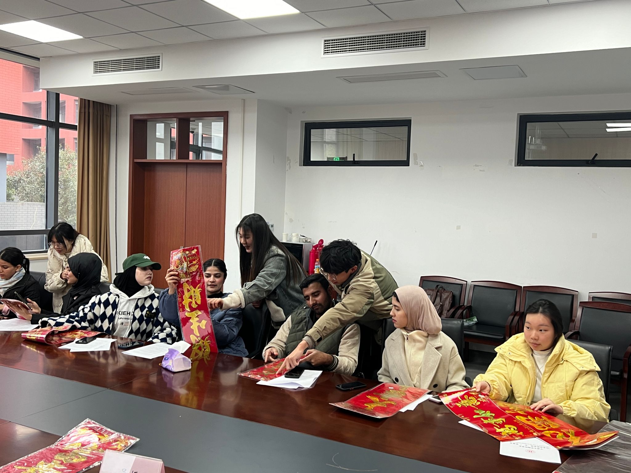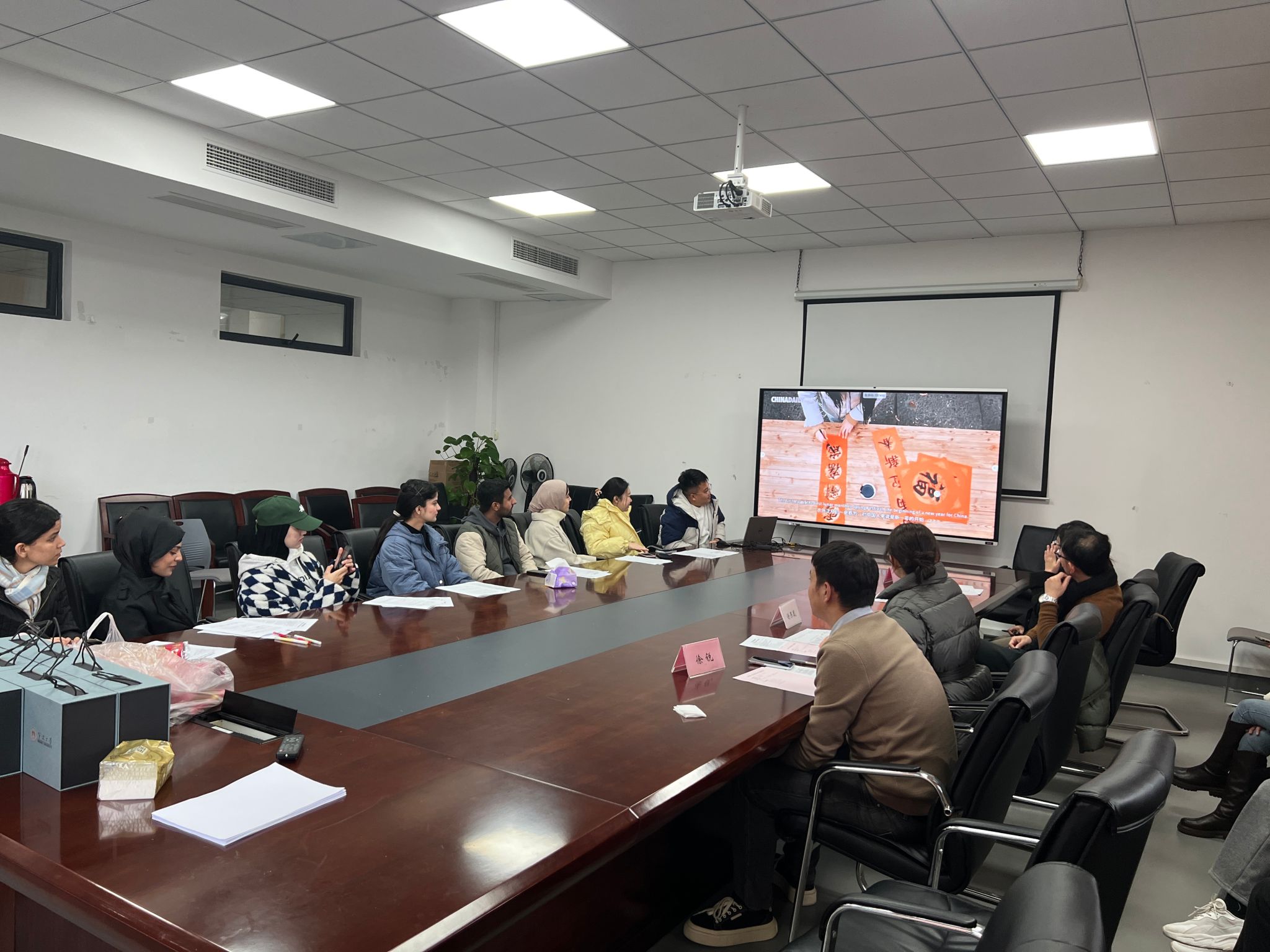 随后,国际生们展开了热烈的现场交流,与老师们分享他们在中国的学习和生活经历。在轻松愉快的氛围中,学院研究生第二党支部通过双语视频,向国际生们介绍了春节的由来和丰富多彩的习俗,让学院国际生更深刻地了解中国传统文化。同时,活动设置了对联识字环节,通过现场识字教学,让国际生们亲身体验中国文化的独特魅力使国际生更深刻地融入到中文化之中。