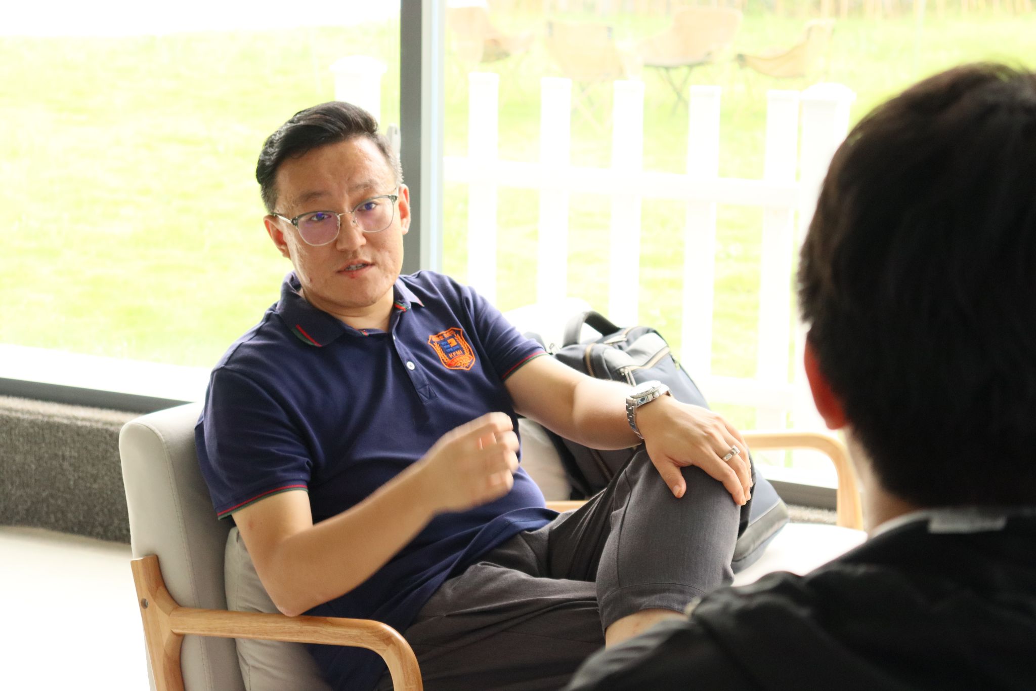 图5 返乡创业者黄徐洁与党员先锋队指导老师讨论大学生就业趋势