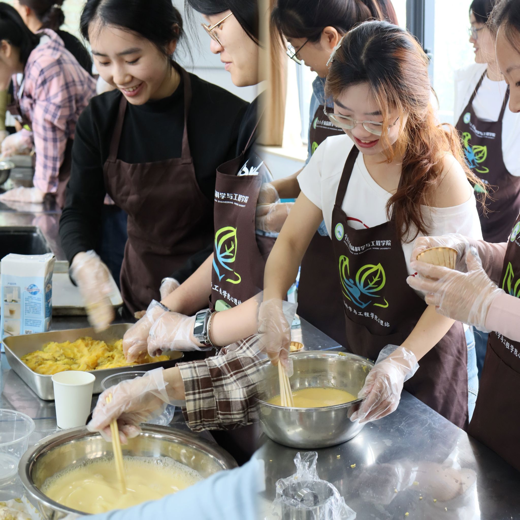 结合国家“体重管理年”对科学饮食的倡导,依托食品专业特色,将“低卡健康”理念融入活动设计。同学们纷纷化身“美食创作家”,沉浸在轻松愉悦的氛围中,亲手制作多款低卡健康美食。调配、搅拌、烘焙,在一道道制作工序里,色泽诱人的“红薯燕麦蛋挞杯”、香气四溢的“牛奶燕麦饼干”、口感绵密的“牛乳绿豆沙”,清甜滋润的“苹果雪梨水”相继完成制作。大家不仅享受着动手制作的乐趣,更在劳动过程中舒缓压力、放松身心,切实诠释了“以劳健心”的活动理念。随后,同学们通过创意摆摊的形式,将这份甜蜜与温暖分享给更多人。