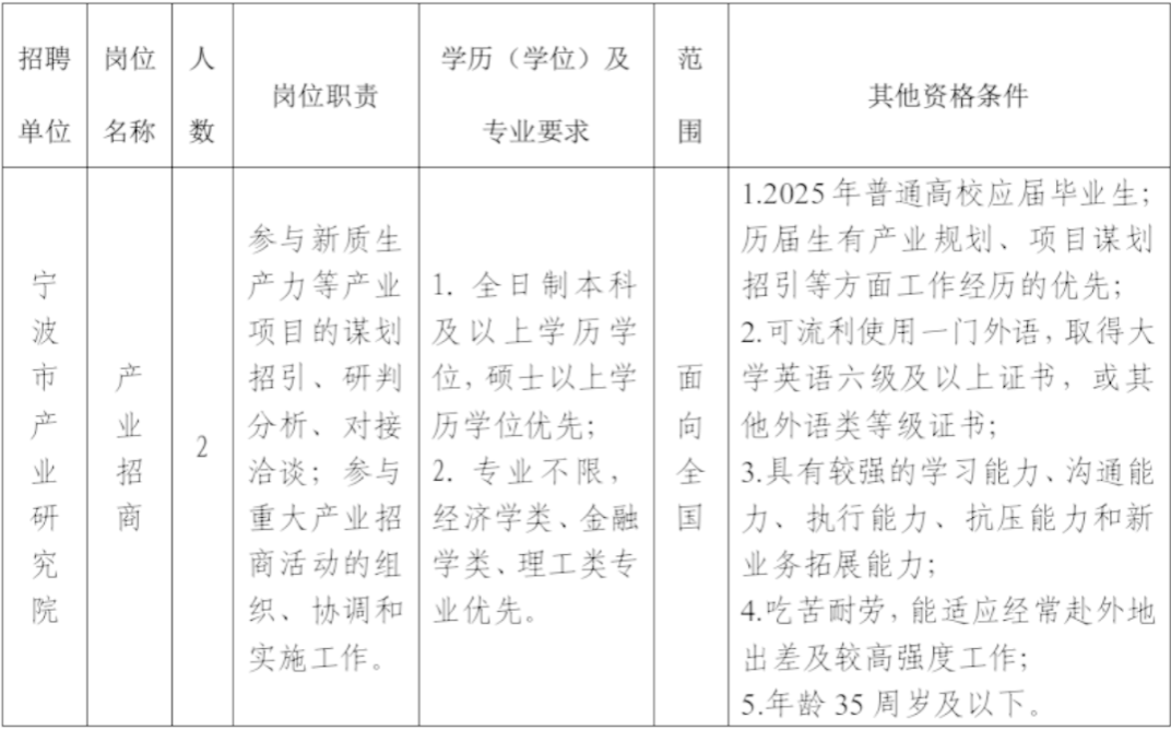 因工作需要,宁波市投资促进局下属宁波市产业研究院决定面向社会招聘合同制编外工作人员2名。