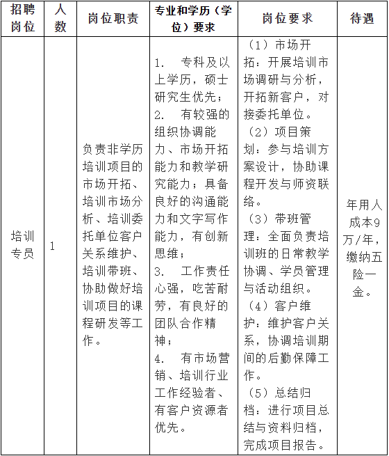 简历投递邮箱:[email protected],文件名及邮件标题请以“ 培训专员岗+姓名”命名。