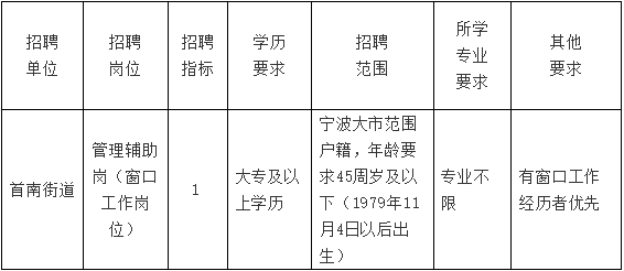因工作需要,宁波市鄞州区首南街道拟面向社会公开招聘编外工作人员1名。